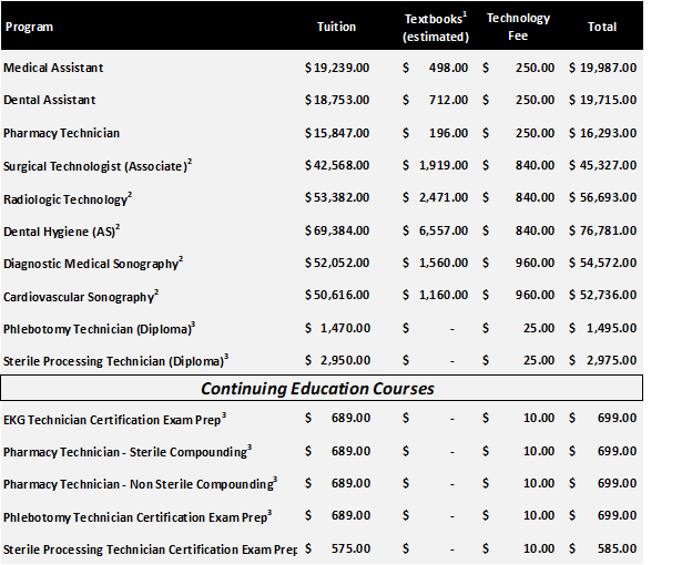 Tuition and direct expenses vary by program and are listed above. The indirect expenses below are based off a monthly average and may be prorated when academic years are shorter or longer. Indirect expenses reflect an average cost of the components that fall within the category. For additional cost of attendance budgets please contact the Financial Aid office.